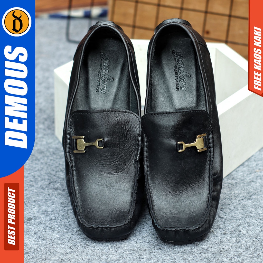 Detail Sepatu Formal Pria Sepatu Casual Pria Kulit Asli Slop Sepatu Pantofel Kerja Kantor Kuliah Kondangan Sepatu Hitam Pria DEMOUS RINSIDE