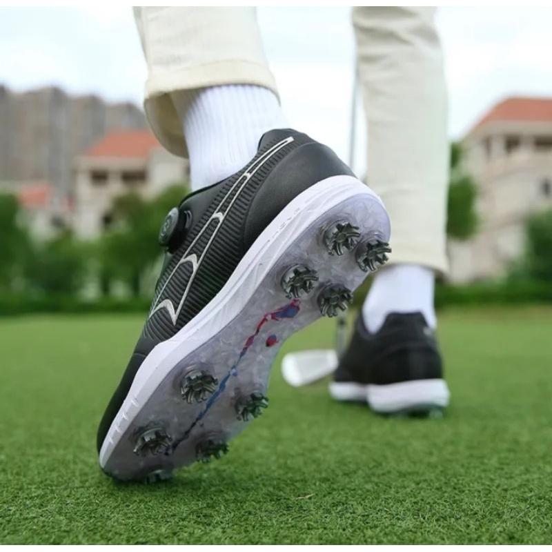 Detail Sepatu Golf Tali Knob BOA Golf Shoes Black 8002