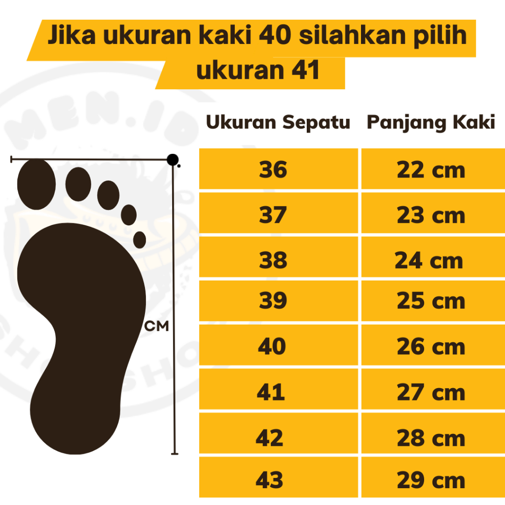 Sepatu kami ukuran besar 1 tingkat dr sepatu umumnya,untuk menghindari salah beli ukuran silakan lihat detail panjang ukuran sepatu d bawah. contoh jika ukuran kaki 40 silakan beli ukuran 41 ______________________ INFO Size Chart insold : - 36 22 cm - 37 23 cm - 38 24 cm - 39 25 cm - 40 26 cm - 41 27 cm - 42 28 cm - 43 29 cm ______________________ CATATAN Gambar Produk 100% Real Picture Dapat box OR!