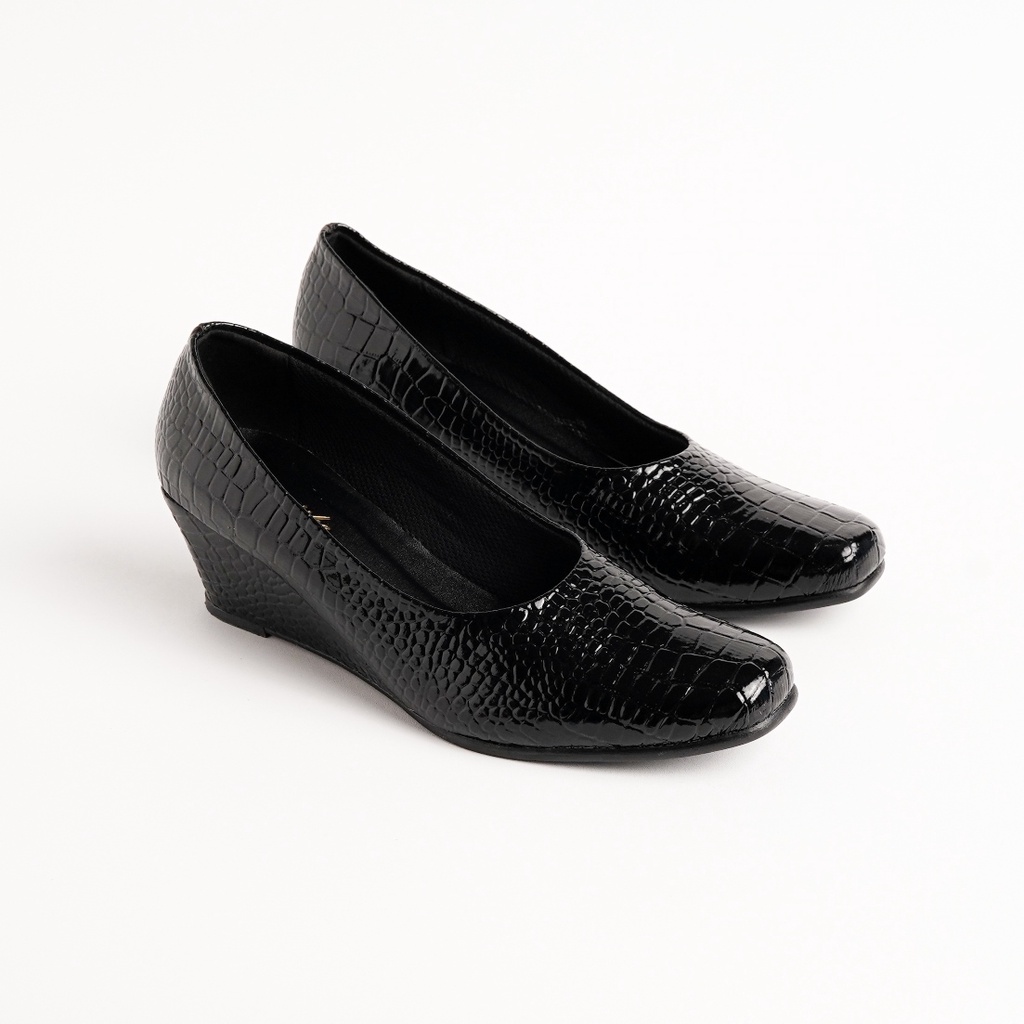 Video perkenalan produk sepatu kantor wanita big size 41-45 heel pantofel kulit serat buaya hitam sepatu cewe formal pesta ukuran besar-jumbo. Sumber: Shopee.