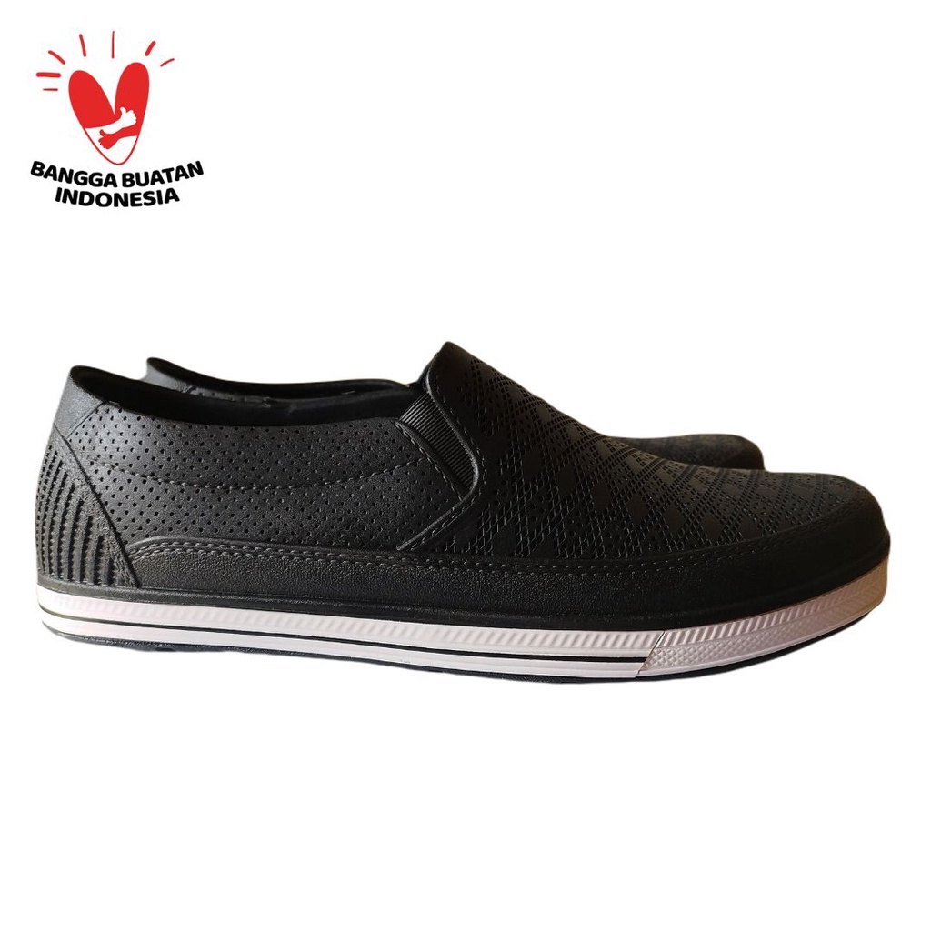 Sepatu Casual Slip On NEW DESIGN yang nyaman saat dipakai, berbahan karet, elastis, tidak licin, cocok dipakai saat hujan, dan mudah untuk pas dipakai saat kerja dengan motif yang elegant.