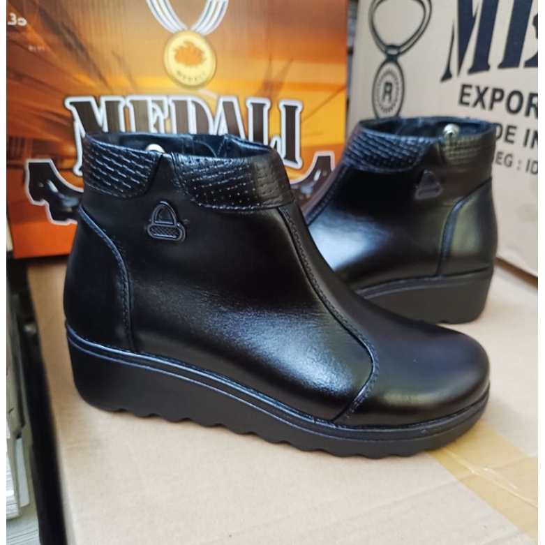 Detail SEPATU KULIT WANITA SEPATU WEDGES SEPATU KULIT PDH WANITA BOOTS POLWAN SEPATU WEDGES REMAJA WEDGES MURAH SEPATU MEDALI