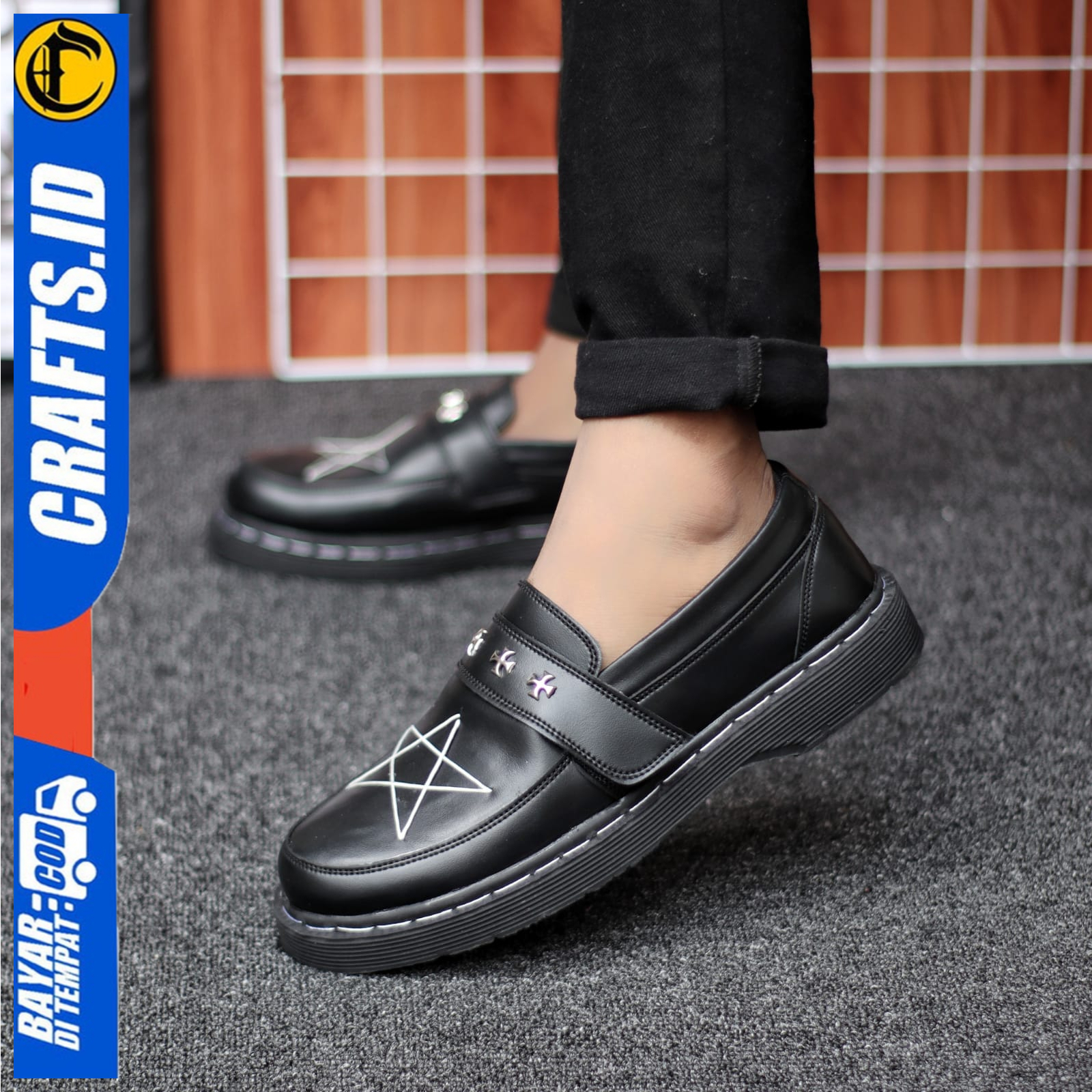 Detail Sepatu Loafers Docmart Pantofel Formal Pria Casual Kulit Hitam PU Kerja Pria Crafs Starmon