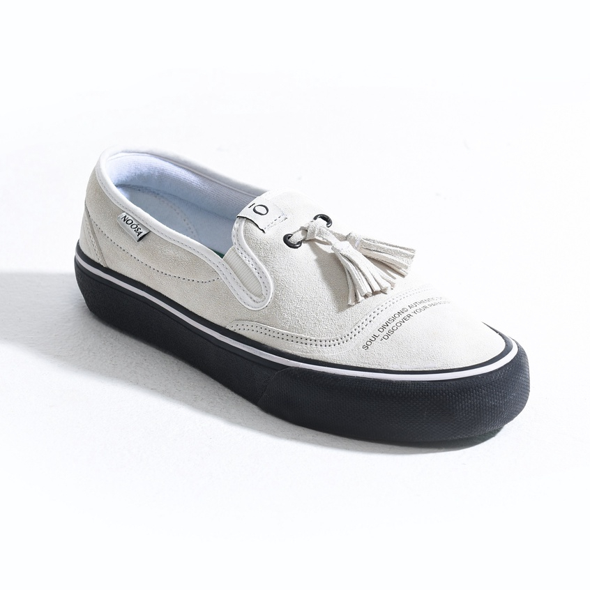 Detail Sepatu Noosa Tassel Slip On Mono White Black