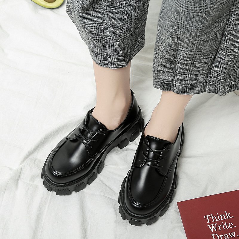 Detail Sepatu Oxford Derby Hak Tinggi Wanita Flatform Ankle Boots Platform Shoes Heels Bot Import Kulit Hitam Black - Ukuran 35 36 37 38 39 40
