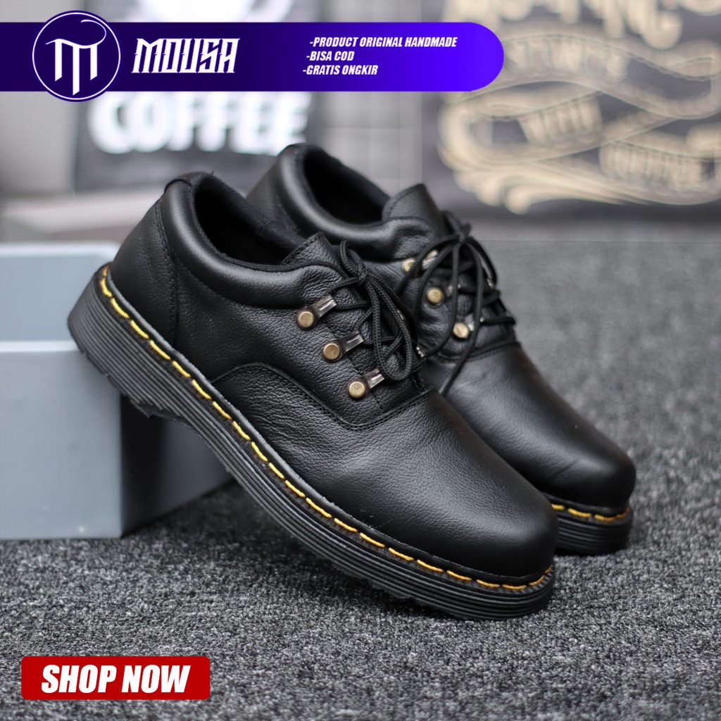 Detail Sepatu Pantofel Pria Formal Docmart Low Boots Kulit Asli Mousa Hagrid