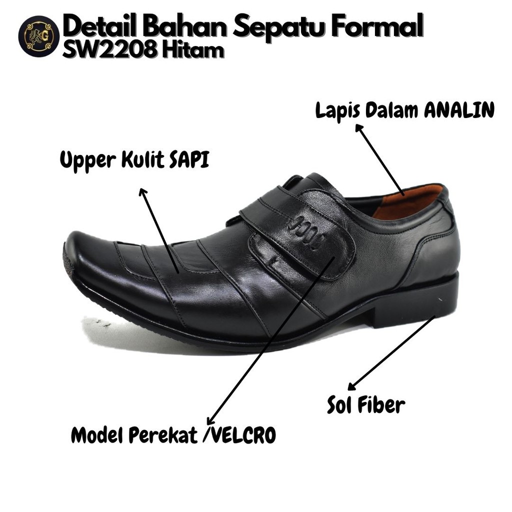 Detail Sepatu Pria Formal Pantofel Kerja Kantor kulit asli Grutty ER033 Hitam