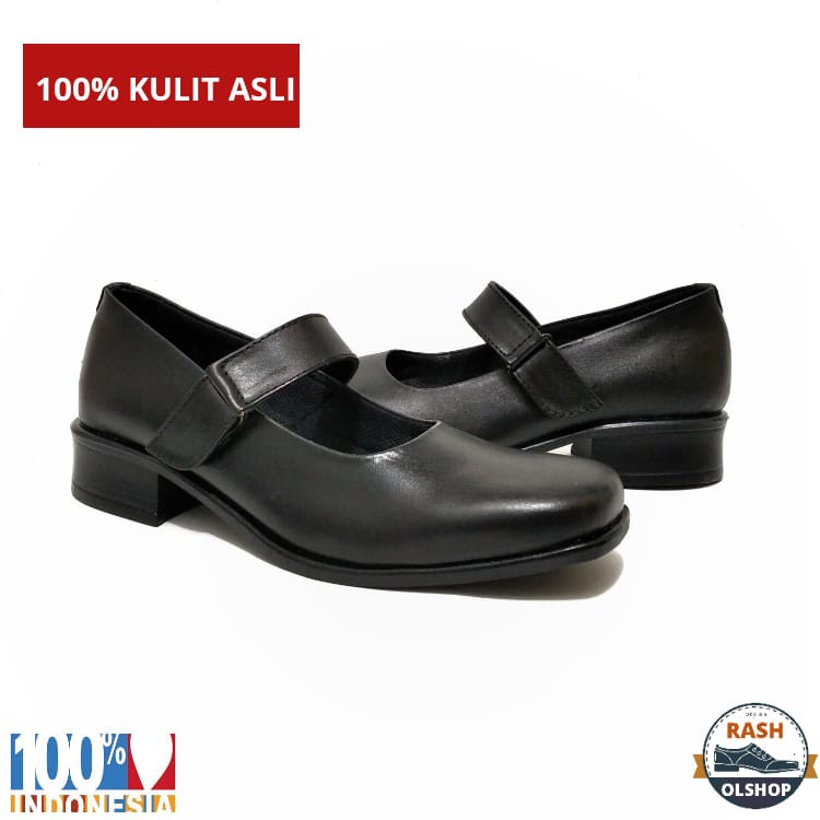 Detail Sepatu paskibra wanita bahan kulit asli model tali satu