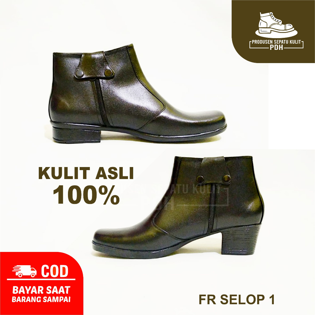 Detail Produk : Ready size 37 - 43 Bahan KULIT ASLI 100% BUKAN SINTETIS HAK 3 CM DAN 5 CM RESLETING SAMPING Sol TPR anti-slip Terdapat busa yang nyaman dipakai Harga sudah termasuk BOX Pengiriman Senin - Sabtu (Order maksimal jam 3 sore)
