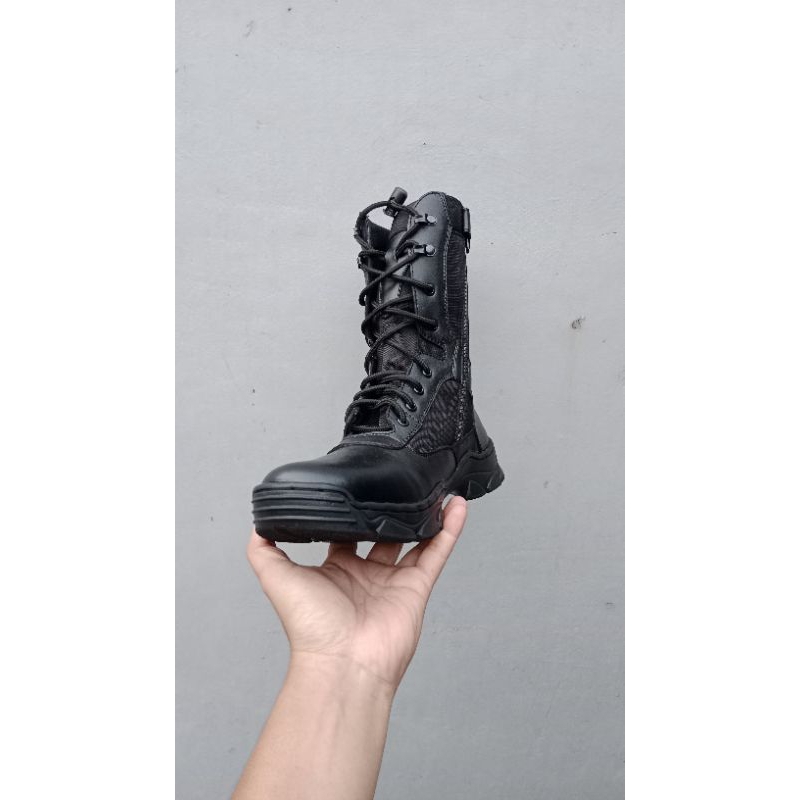 Sepatu Pria > Boot > Safety Boot > SEPATU PDL KULIT TNI POLRI SEKURITY HIKING TOURING BAHAN KULIT DAN KORDURA ANTI AIR PAKAI RESLETING SUDAH DI SOL MERK BROTRHER MARCO