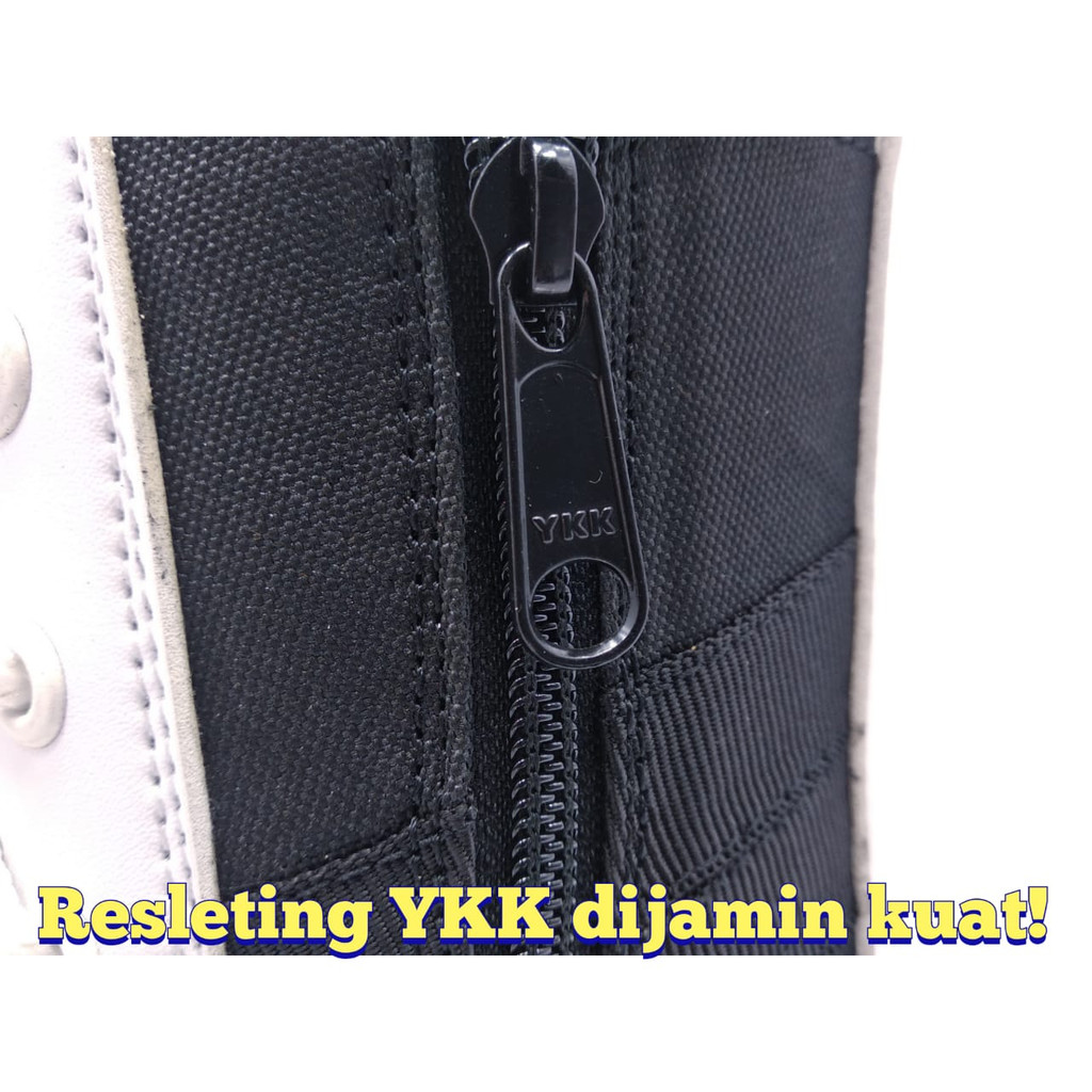 -Bahan syntetic leather . permukaan dasar lembut rapi. -Pakai resleting buaya asli YKK dijamin kuat. -bagian UPPER with SIDE POCKET / KANTUNG PINGGIR bisa untuk menyimpan uang dll. -Kanvas tebal CORDURA waterproof(tahan air) -telapak outsole di press dan jahit keliling KARET ASLI ANTI SLIP . -Bagian dalam busa tebal insole TEBAL. dijamin nyaman dipakai. . SEPATUNYA KEREN. MURAH TAPI GAK MURAHAN,. :) . Real picture. bukan nyomot dari yang lain. Jika barang tidak sesuai boleh retur. Barang jelek tidak sesuai foto uang kembali. ADA HARGA ADA KUALITAS. SEGERA DI ORDER YA!! . Jangan beli belanja online kalo tidam percaya barang akan dikirim! . Ready size 38-45 .