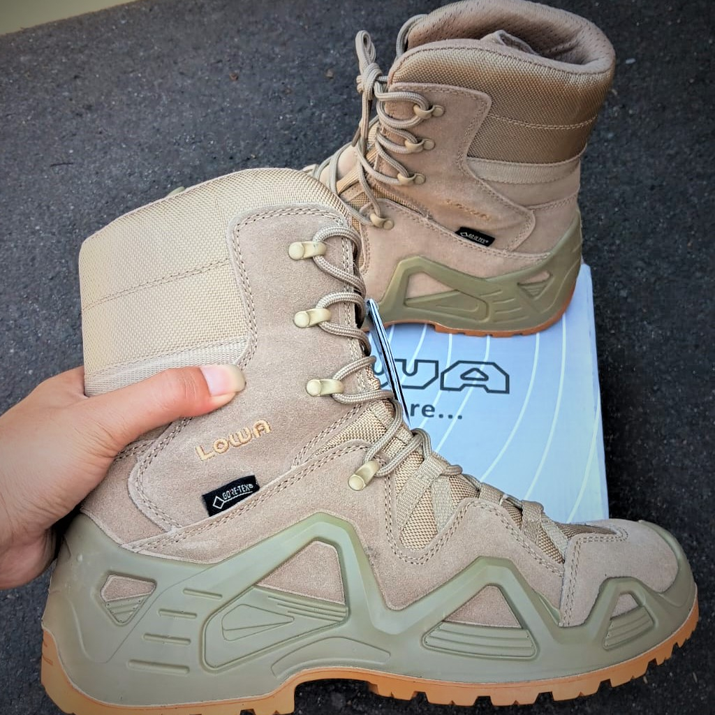 Video perkenalan produk sepatu pdl taktikal l0w4 boots krem import. Sumber: Shopee.