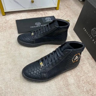 sepatu boots cowok philipp plein sneaker pria high top pp men shoes hitam vip P1SHOES