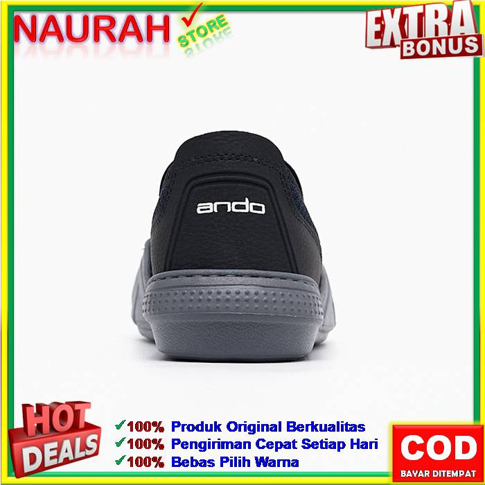 Kelebihan Sepatu ANDO: - Proses press sol sepatu yang kuat - Anti Selip - Nyaman dipakai dan awet - Cocok untuk pemakaian casual maupun berolahraga - design keren dan mengikuti tren - bobot ringan - kualitas yang terbukti bagus dan sudah diakui