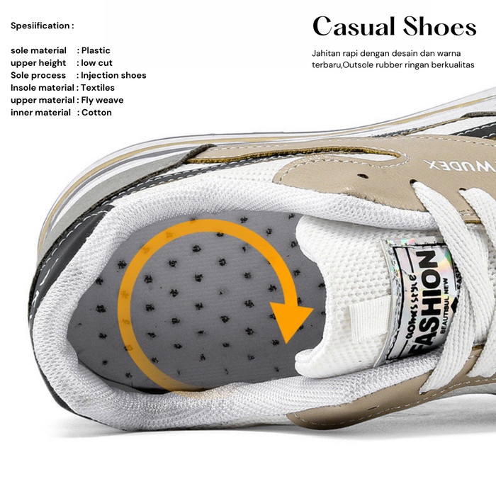 Desain sepatu bergaya dinamis dan aktif, bisa digunakan untuk Sport maupun aktifitas sehari - hari.