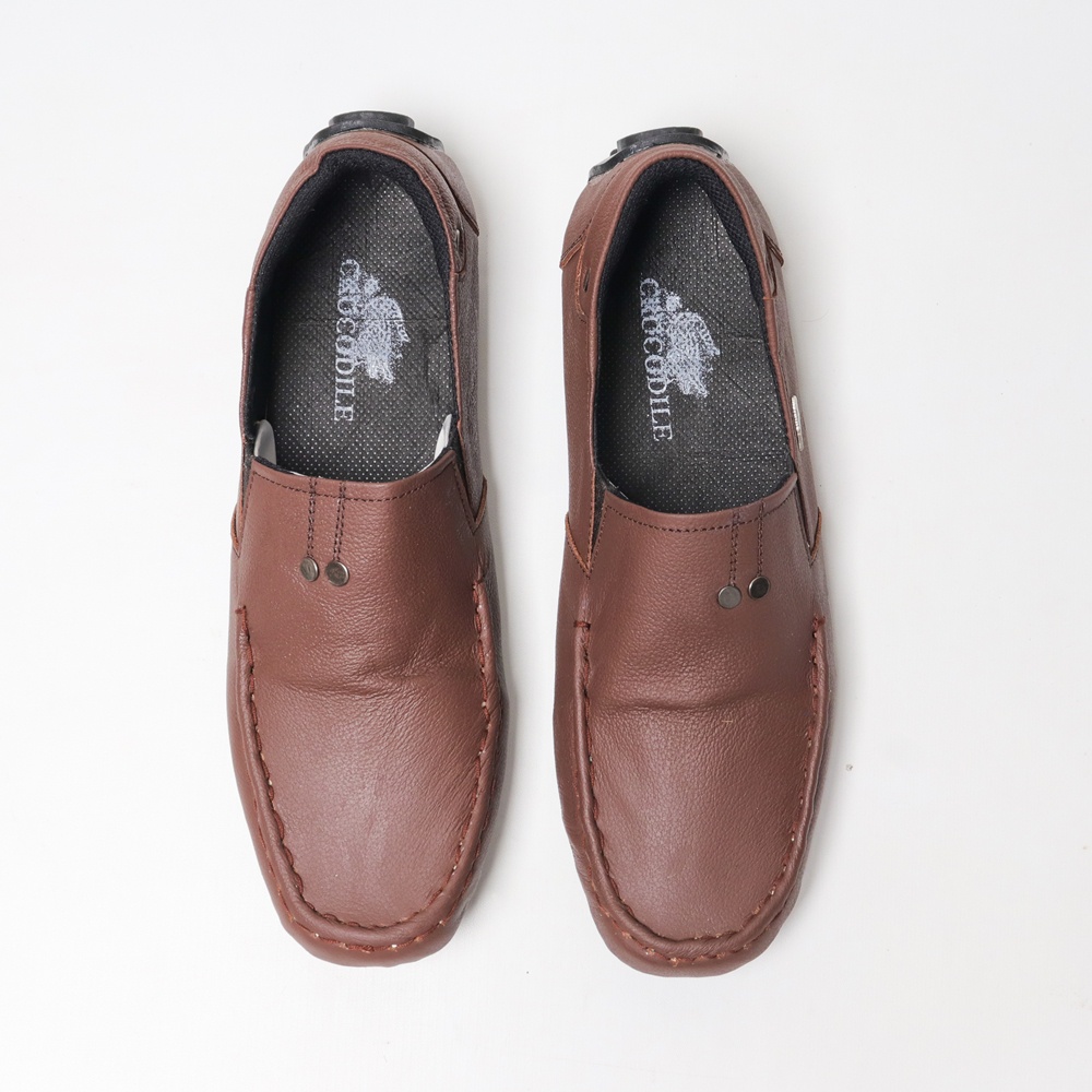 Detail Sepatu pria slip On crocodile Kulit Sapi Asli formal semi formal PREMIUM quality cokelat