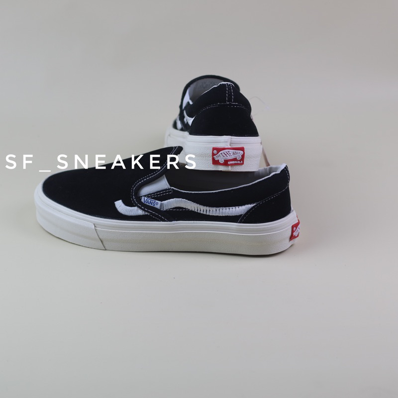 Sepatu Pria Wanita Sneakers Vans Slip On Side Stripe Black White Premium QualitySepatu Pria Wanita Sneakers Vans Slip On Side Stripe Black White Premium Quality