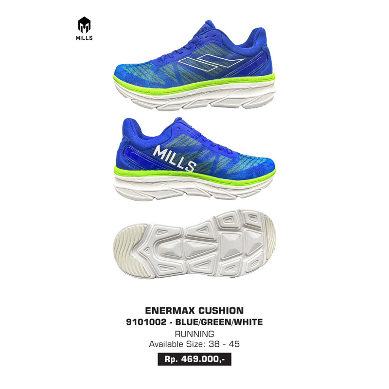 Video perkenalan produk SEPATU RUNNING MILLS ENERMAX CUSHION. Sumber: Shopee.