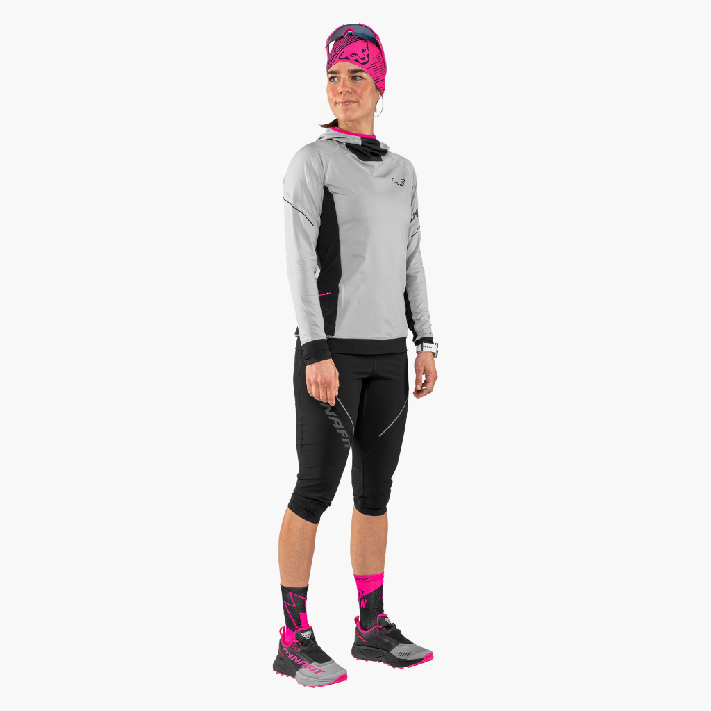 The Dynafit Ultra 100 for women are neutral trail shoes. The Ultra 100 is the trail shoe from Dynafit that provides the most cushioning. The model is specially designed for running ultra long distances. The distance of an ultra run starts at 50 kilometres, but is often around 100 kilometres or more. Then you want trail shoes that provide continuous targeted cushioning over those distances and time.