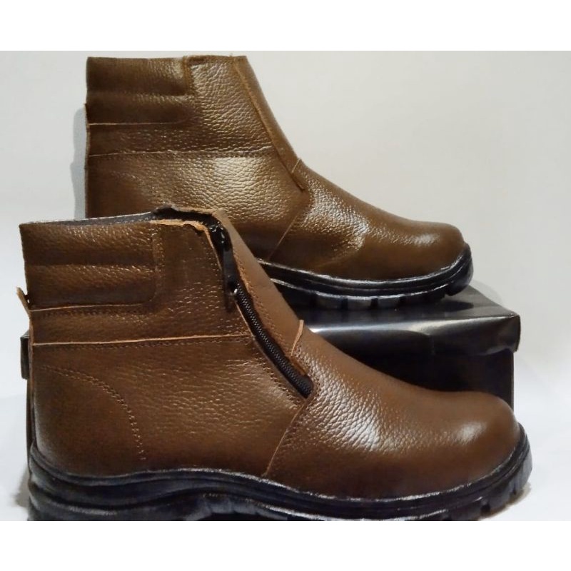 Detail sepatu safety boot /sapatu safety pria murah /sepatu safety kulit asli sol karet ujung besi seleting