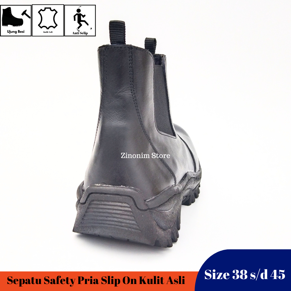 Sepatu Safety Kulit Asli Original Safety Shoes Ujung Besi Slip On Hitam Sepatu Kerja Tanpa Tali Ukuran 38 39 40 41 42 43 44 45
