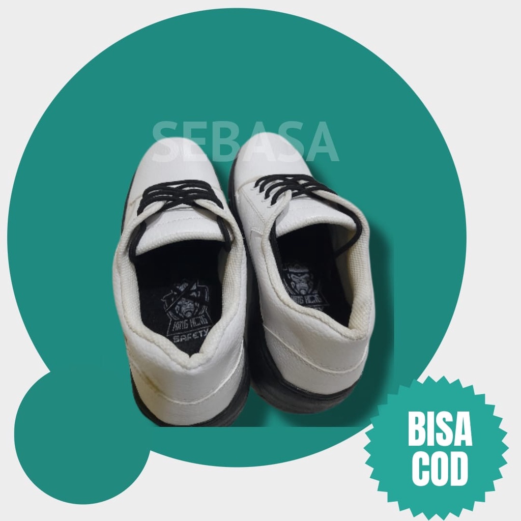 Detail sepatu safety pendek tali warna putih cocok untuk kerja