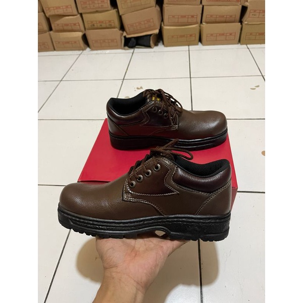 Berikut Spesifikasi Produk : Model : Safety Outdoor Bahan, Material : Kulit Sintetis Premium High Quality & Ujung Besi Baja Ukuran : 39,40,41,42,43,44,45 Kondisi : 100% Baru Kemasan : Packing Rapih