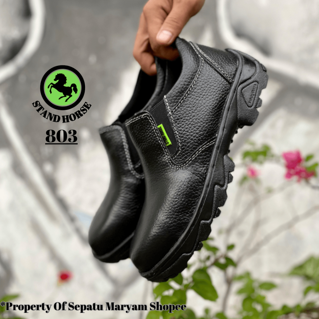 Detail Sepatu Safety Slip On Casual Kulit Asli Safety Shoes Low Boots Ujung Besi Sepatu Septy Septi Ori SNI