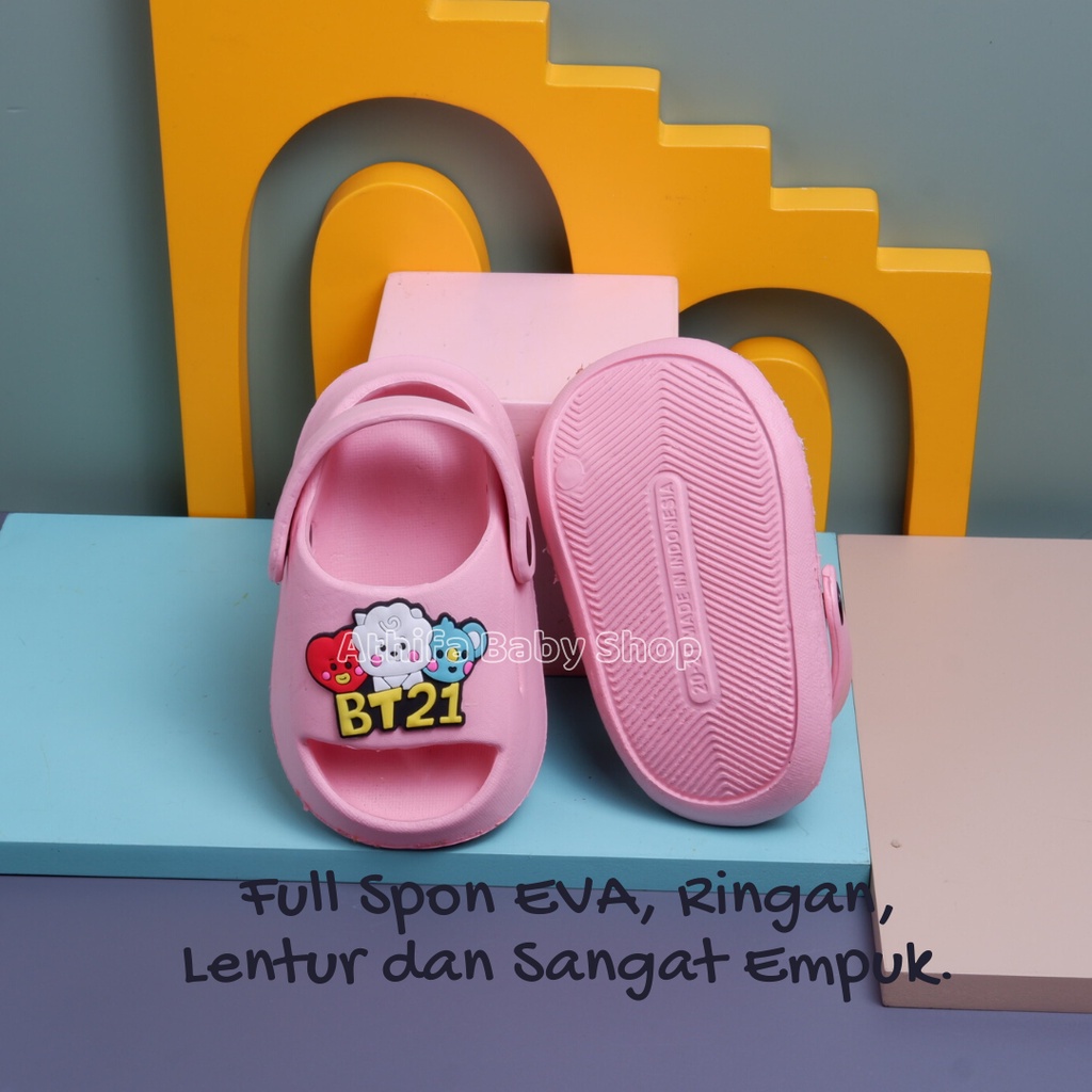 Sepatu Sandal Anak Perempuan Bayi Balita Usia 6 7 8 9 10 11 Bulan 1 2 3 Tahun Sendal Gunung Karakter Cewek Spon Prewalker Phylon Ringan -Asfer BT21-