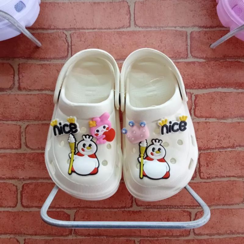 Detail Sepatu Sandal Baim Clog Crocss Anak Karakter Mixue Es Krim Ice Cream Viral Jibbitz