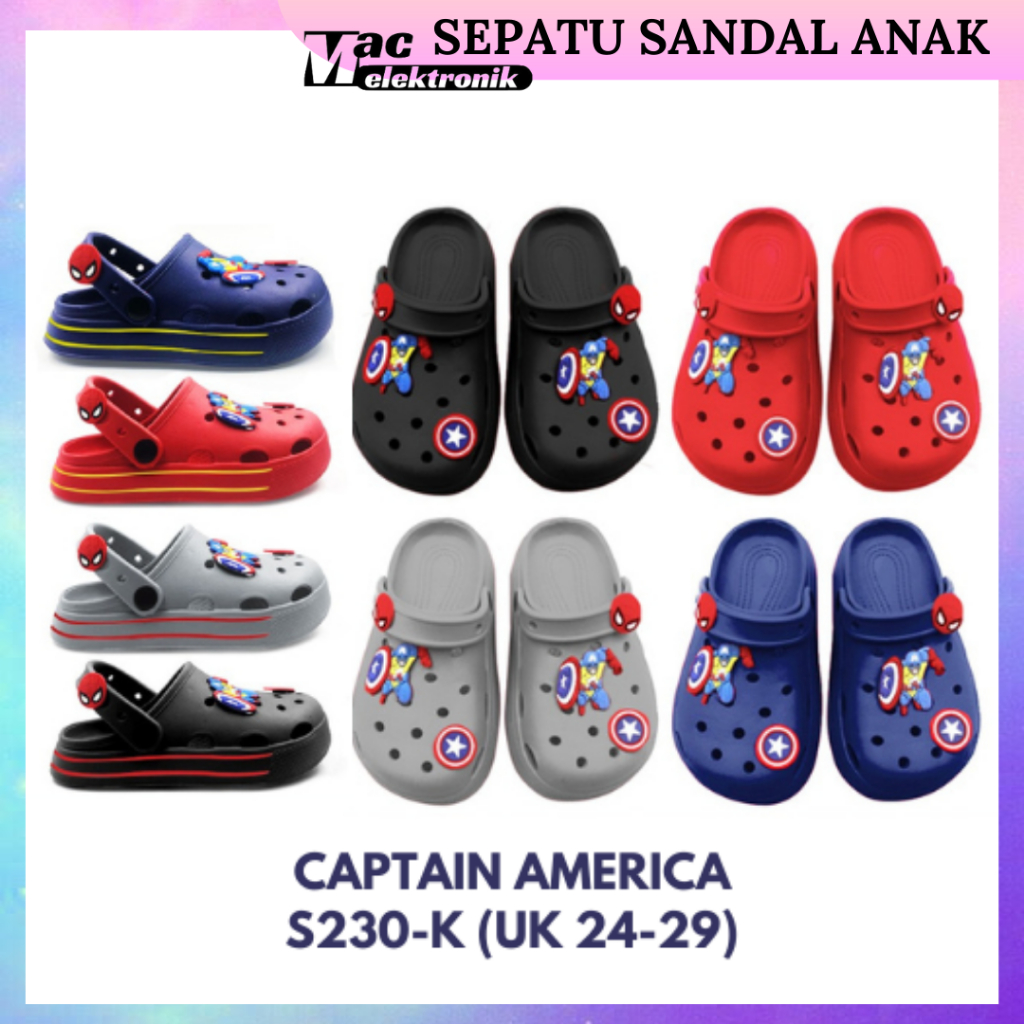 Detail SEPATU SANDAL BAKPAO/BAIM ANAK SANDAL KODOK UNTUK ANAK SPRIDERMAN CAPTAIN AMERICA MARIO