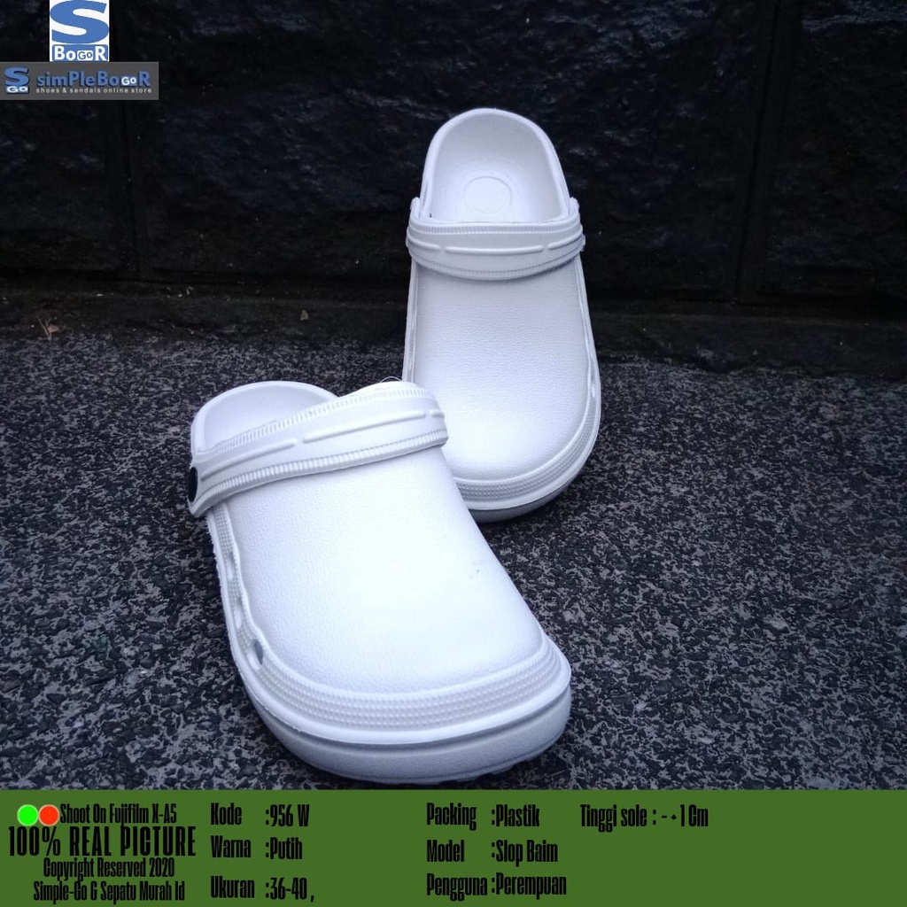 sepatu sandal cewek cowok selop baim 36-40 kodok putih model 956W