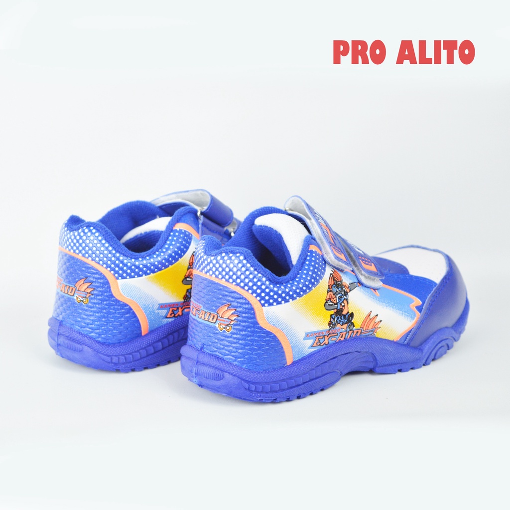Pro Alito sepatu anak berkualitas Bahan Upper : Kulit PU + Canvas Sol pvc karet antislip size 25-30 warna : Merah , Biru , Hitam menggunakan perekat untuk memudahkan anak anda memakai sepatu .