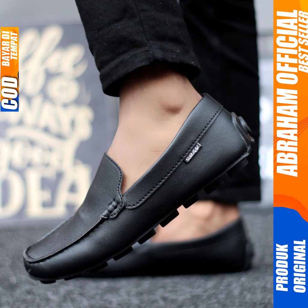 Detail Sepatu Slip On Casual Anti Slip Kerja Santai Hitam Pria Abraham Vanezia