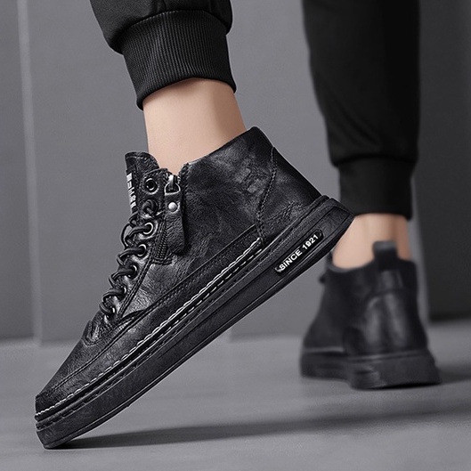 Detail Sepatu Sneaker boots Original SEPATU KULIT PRIA IMPORT SENSE Trendy tripel jahitan lentur elastis (COD GRATIS ONGKIR)