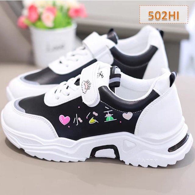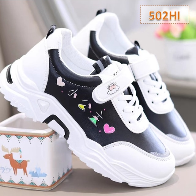 Detail Sepatu Sneakers Anak Lovely Cewek Cowok Hitam Pink Putih (502)