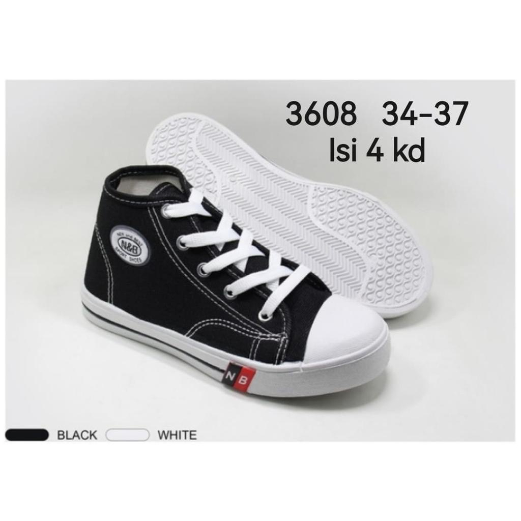 Detail Sepatu Sneakers Boots Tali Hitam Putih N&B Unisex Ukuran 30-43 / 4604 / 3608 / 1461 // 4612 / 3616 / 1462
