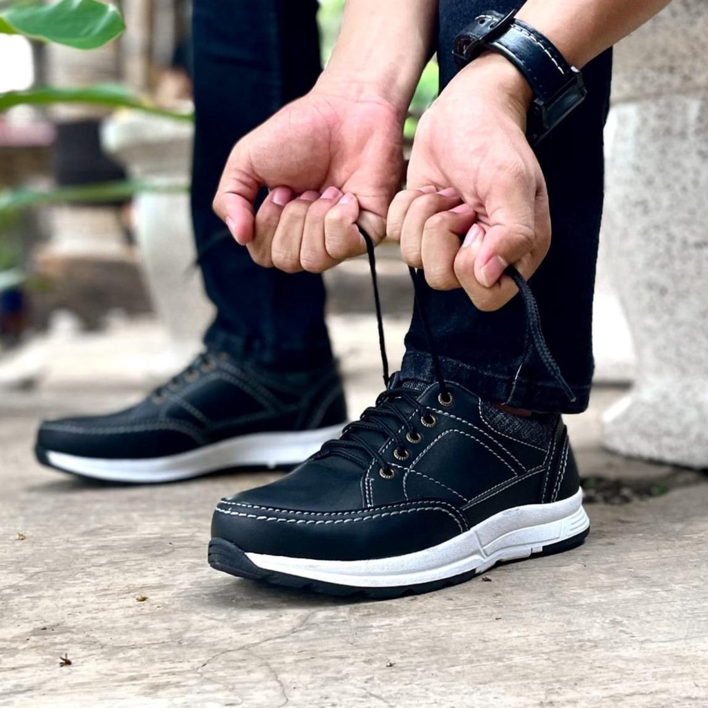 Kasual Davis 1. Kulit sintetis 2. Sol karet anti licin anti slip 3. Jahitan rapi 4. Belakang full busa nyaman&empuk di kaki