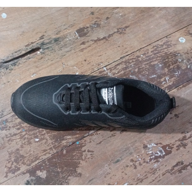 Detail sepatu sneakers recomendasi buat sekolah sepatu full hitam ZACKQUILLE untuk anak sekolah TK SD SMP SMA KULIAH size 32 44