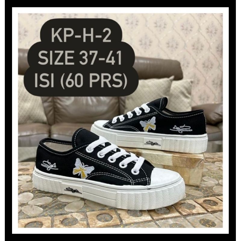 # KEMASAN - Menggunakan paper bag, TIDAK memakai box. # BAHAN - Kanvas bagus. # DIPRODUKSI - Dengan menggunakan mesin produksi dengan daya rekat sangat kuat tidak mudah jebol dan kami produksi sendiri. # SOL - Karet lentur, tidak keras, empuk pada saat dipakai, tidak licin serta nyaman di pakai. # GAMBAR - Real dengan menggunakan produk aslinya. # UKURAN : 37,38,39,40,41 Standar indonesia.