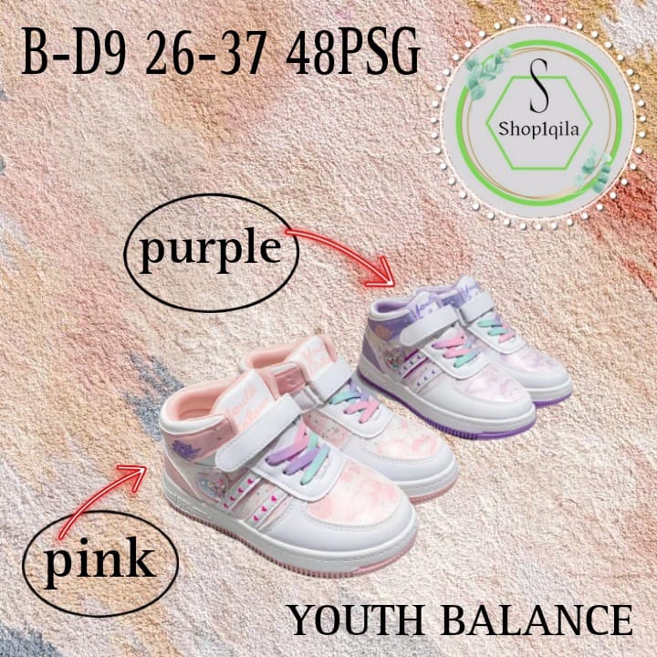SEPATU ANAK PEREMPUAN TERBARU & TERMURAH YOUTH BALANCE B-D9 SIZE 26-37 WARNA SESUAI ETALASE
