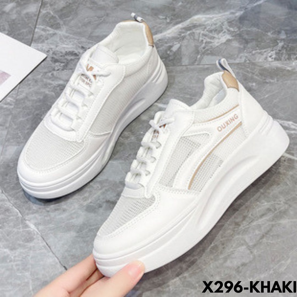 Detail SEPATU SNEAKERS WANITA DESIGN CANTIK ANTI GERAH BAGUS NIH BAHAN PU COMBI NET IMPORT 296