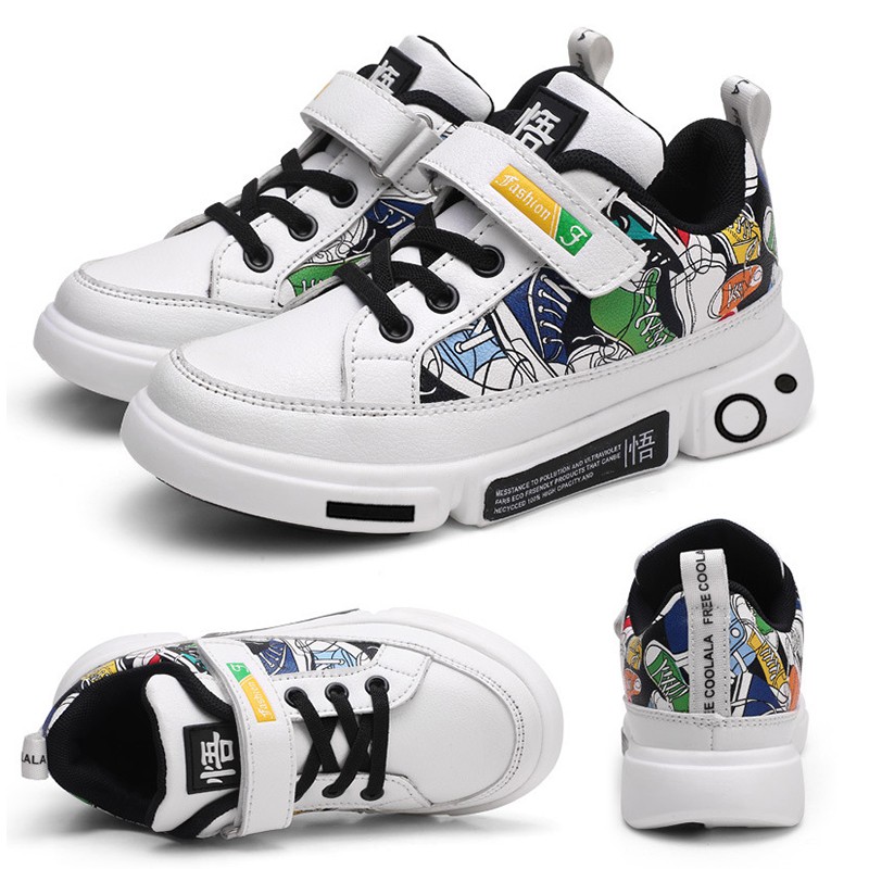 Detail Sepatu Sneakers Warna Hitam Putih Motif Kartun Aneka Ukuran untuk Anak laki laki