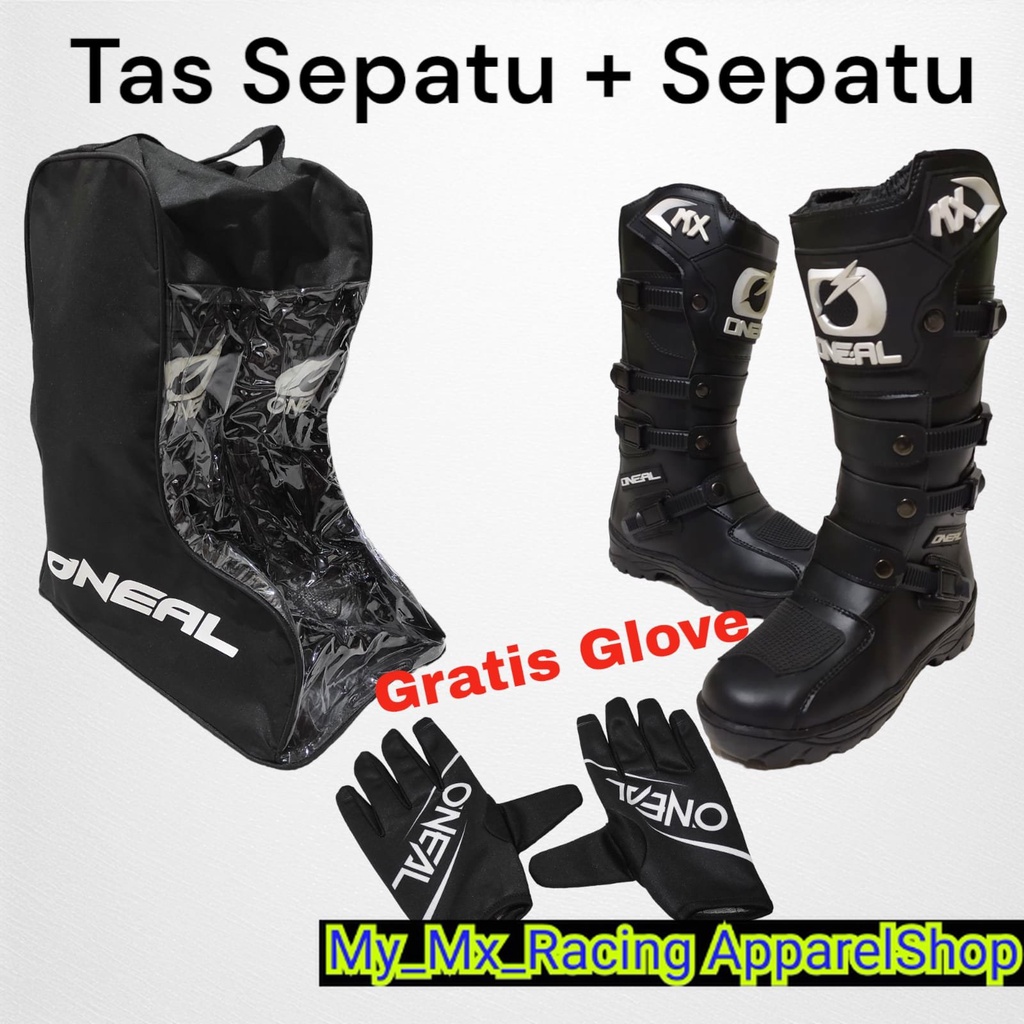 sepatu trail cross plus tas buat sepatu bonus sarung tangan satu set sepatu trabas or adventure dan tas satu set cocok dan keren sepatu gunung BLACK BEST SELLER
