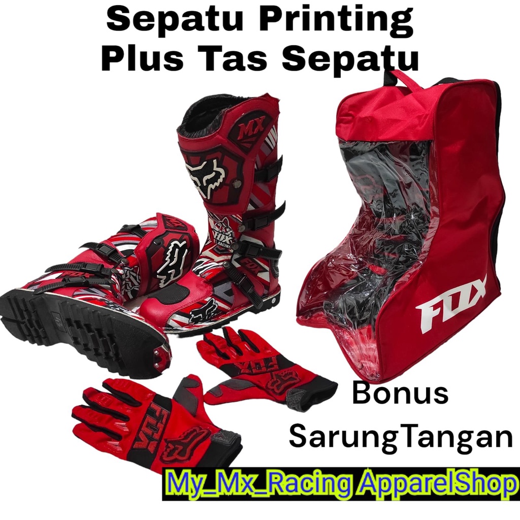 sepatu trail cross printing plus tas buat sepatu bonus sarung tangan satu set sepatu trabas or adventure dan tas satu set cocok dan keren sepatu gunung RED BLACK