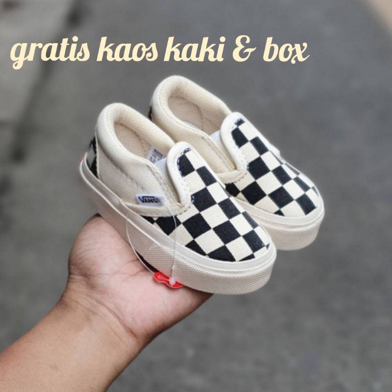 Fashion Bayi & Anak > Sepatu Anak Laki-Laki > Sepatu Sneaker > SEPATU VANS ANAK | SEPATU ANAK LAKI LAKI | PEREMPUAN SLIP ON OG CREAM CHECKERBOARD SLIP ON