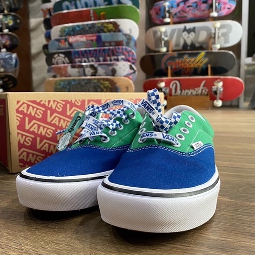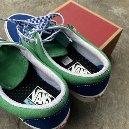 Vans shoes era Blue green lace mix comfycush Lace Mix/ True Blue/Fern Green Canvas upper Classic waffle sole Vulcanized Rubber Outsole size 40.5 original VANS