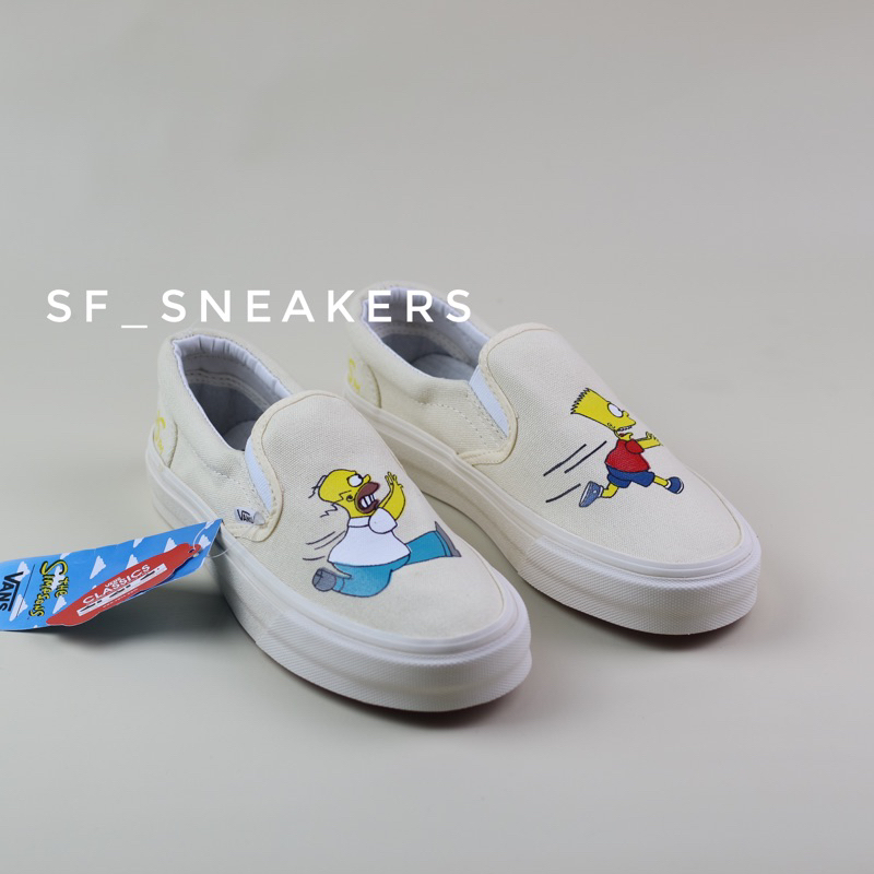 Detail Sepatu Vans Slip On Simpsons Homer & Bart Cream Fow Men And Women UNISEX BNIB