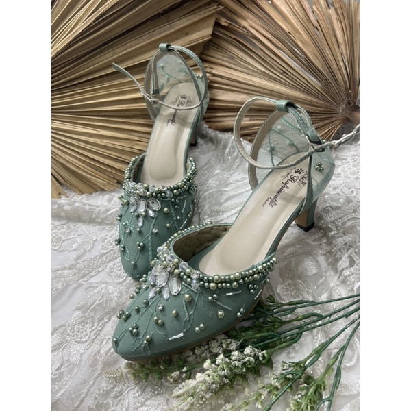 sepatu wanita wedding model Zaneta sage green tinggi 7cm lancip