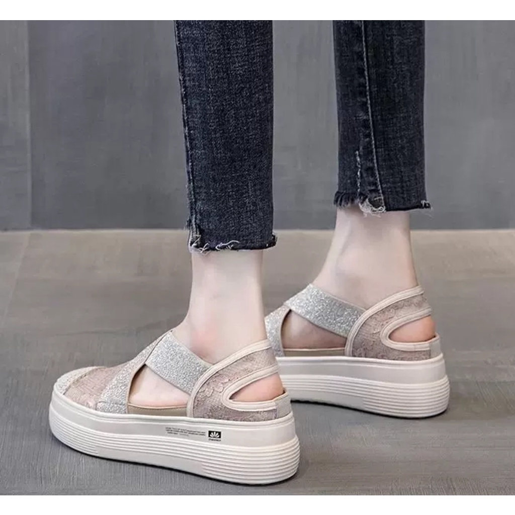 (Tersedia Size 35-40, With Box) Original : China Material : PU Leather + Mesh 1/35 : 22,5cm 2/36 : 23cm 3-37 : 23,5cm 4/38 : 24cm 5/39 : 24,5cm 6/40 : 25cm Tinggi Sol : 6cm Weight : 750grams